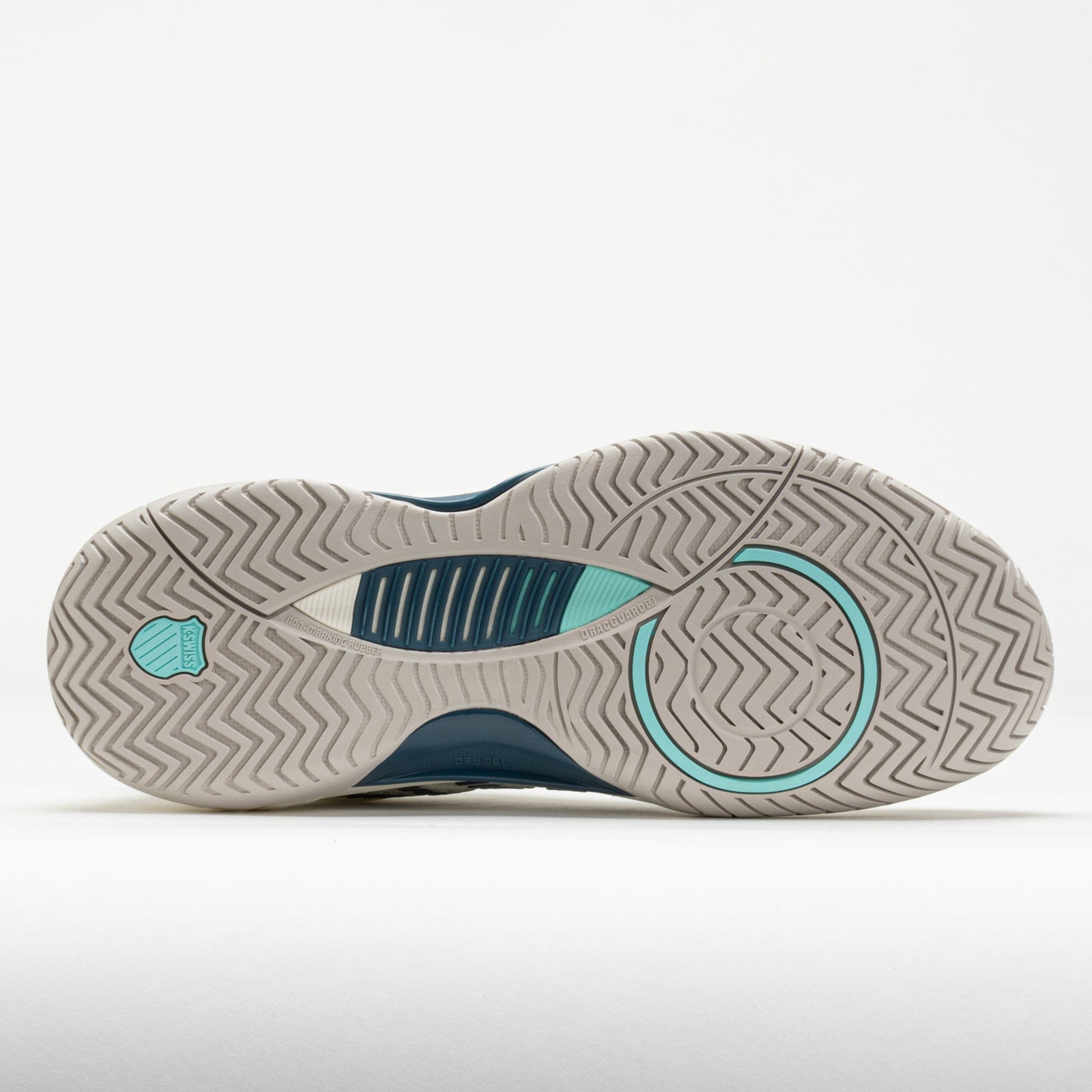 Outsole: DragGuard 7.0 rubber outsole features a modified herringbone tread pattern for traction and durability on all court surfaces.